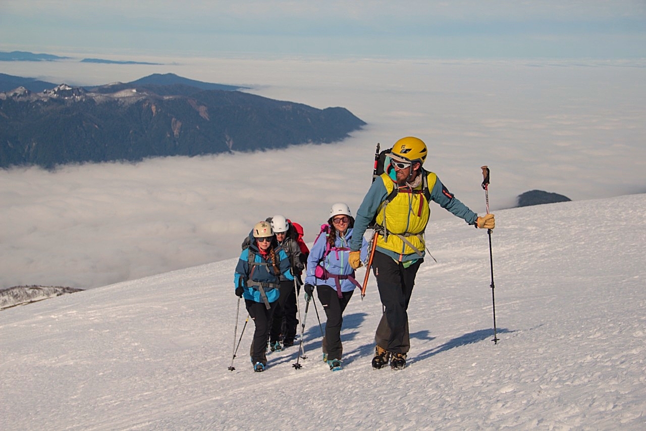 Está enfocado a aquellas personas que desean comenzar a vivenciar experiencias nuevas en terrenos volcánicos, haremos uso de raquetas, grampones y piqueta para progresar en las caminatas. Aprenderás a adaptarte de una manera correcta al terreno nevado.