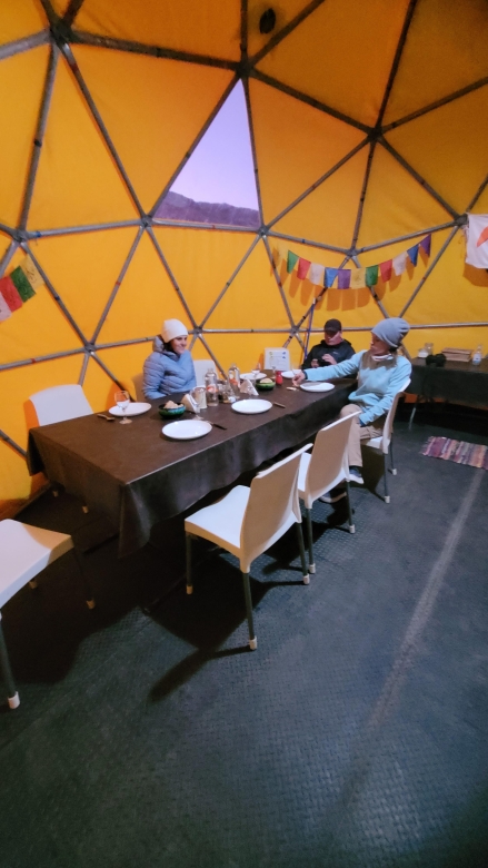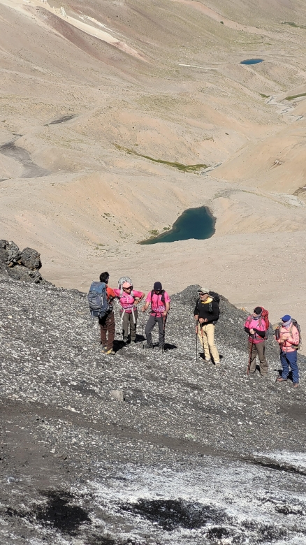 Día de aclimatación a la altura y caminatas cortas, charlas técnicas y práctica, en terrenos nevados donde utilizaremos grampones y piquetas, volvemos al zona de acampe.