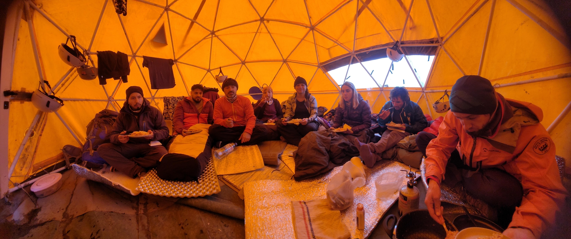 Comemos, nos hidratamos. Serán los Momentos de Relax mientras compartimos con otros montañistas charlas de refugio acompañado de mate o alguna infusión disfrutando de un paisaje único. Después de recibir la charla técnica de la vestimenta y equipo a usar la jornada siguiente. Cenamos temprano alrededor de las 19 horas, para luego descansar ya que debemos reponer energías .
