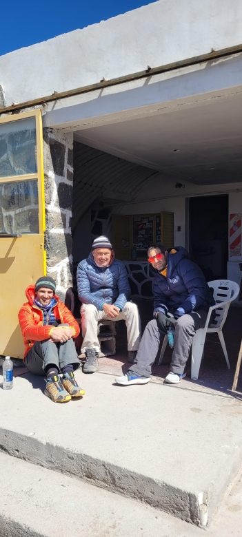 Refugio La Gruta. Jornada de descanso y aclimatación mientras nos preparamos para el día de cumbre permaneciendo. Servicios: refugio de montaña, luz eléctrica, carpas en caso de que el refugio esté completo, desayuno, lunch, merienda, cena.
